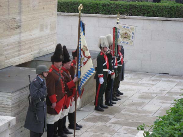 Bayern Oberstleutnant d.Ldw. Jürgen Völkl und der Presseoffizier Major d.Ldw. Hans Härtl, beide aus Störnstein, so wie eine Fahnenabordnung der K.B. Bürgerwehr Schwabach