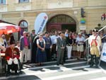 Damen in historischen Kostümen begleiteten die Gruppen, die von den Zuschauern