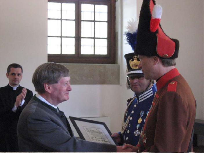 Helmut Müller von der "Historischen Königlich Bayrischen Bürgerwehr Artillerie Wolkersdorf" wurde per Urkunde zum Hauptmann befördert.